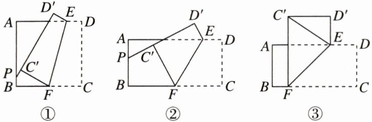(3) 如图③,若$AB = 3$,$AD = 6$,$BF = 1$,连接$C'E$,当点$E为AD$的三等分点时,直接写出$\frac{E