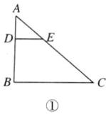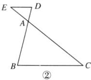 ∴ $\frac{BD}{AB}=\frac{CE}{AC}$,即 $\frac{4}{6}=\frac{CE}{9}$,解得CE = 6;如图②,当点D在边BA的延长线上时,