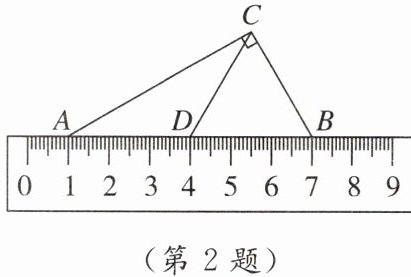2. 2023·株洲 一技术人员用刻度尺(单位:cm)测量某三角形部件的尺寸.如图所示,已知$∠ACB= 90^{\circ }$,点D为边AB的中点,点A,B对应的刻度为1,7,则$CD= $ (