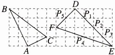 9. [2023北京昌平区期中]如图,在边长为1的小正方形组成的网格中,$△ABC和△DEF$的顶点都在格点上,$P_{1},P_{2},P_{3},P_{4},P_{5}是△DEF$边上的5个格点,请按要求完成下列各题: