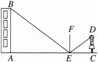 5. [2023广州增城区期末]小红用下面的方法来测量学校教学大楼AB的高度:如图,在水平地面点E处放一面平面镜,镜子与教学大楼的距离AE= 20m.当她与镜子的距离CE= 2.5m时,她刚好能从镜子中看到教学大楼的顶端B.已知她的眼睛距地面高度DC= 1.6m,请你帮助小红测量出大楼AB的高度(注:入射角= 反射角).