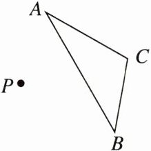 7. 如图,以点$P为位似中心画\triangle ABC的位似图形\triangle DEF$,使$\triangle ABC与\triangle DEF的相似比为1:2$,并写出$\triangle ABC与\triangle DEF$的面积比和周长比.(在点$P$右侧作图即可)