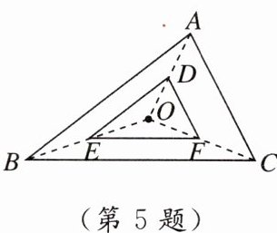 5. [2024莆田城厢区一模] 如图,$\triangle DEF是由\triangle ABC$经过位似变换得到的,点$O$是位似中心,$D$,$E$,$F分别是OA$,$OB$,$OC$的中点,则$\triangle DEF与\triangle ABC$的面积比是 (