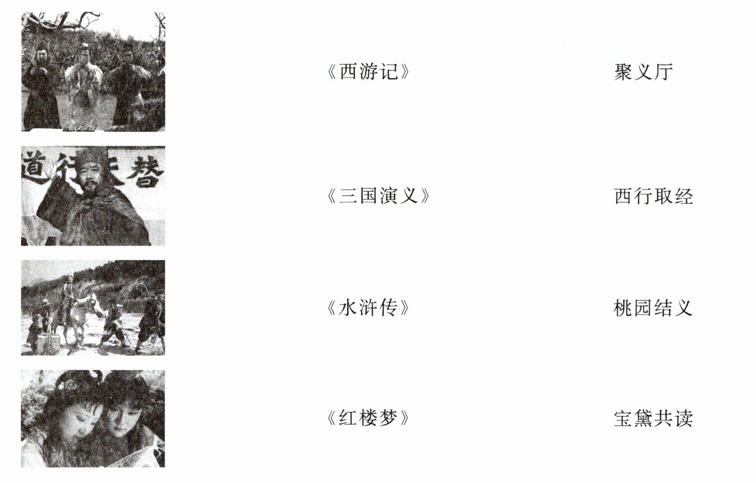 看图片,猜名著,把图片和名著名称及内容用直线连起来。