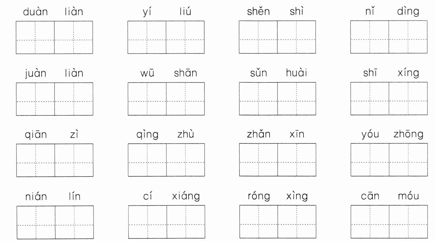 锻炼 遗留 审视 拟定 眷恋 巫山 损坏 施行 签字 庆祝 崭新 由衷 年龄 慈祥 荣幸 参谋