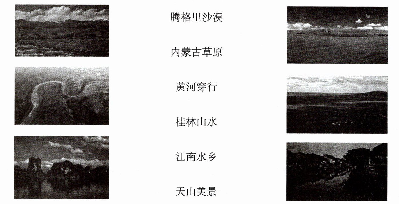 一、这些图片对应着祖国哪些区域?请你试着用直线连起来。