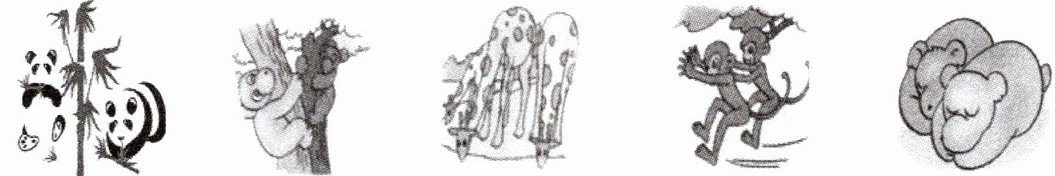 看图片,运用 climbing,eating,drinking,playing,sleeping,jumping 这六个单词写句子,用英语描述动物园里动物们正在进行的活动。