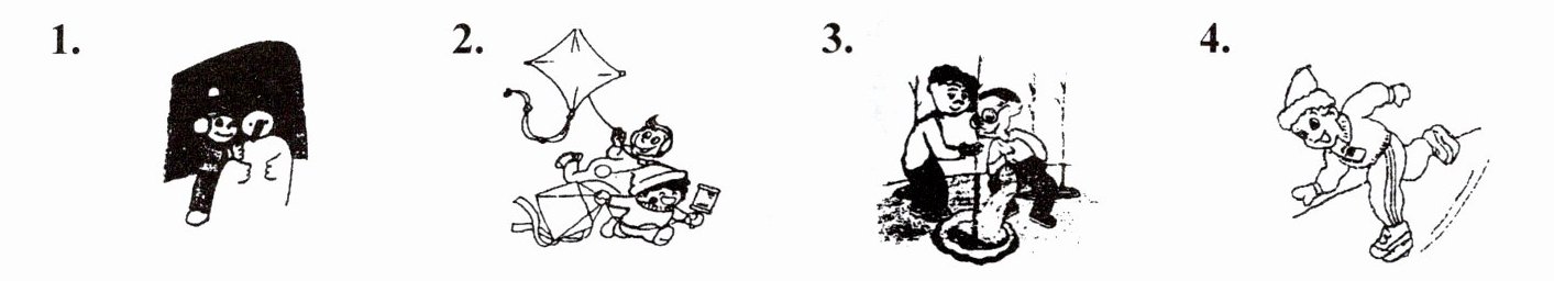 1.make a snowman 2.fly kites 3.plant trees 4.go skating