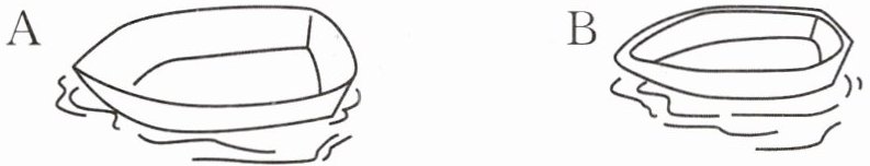 (1)如图,用同样多的橡皮泥捏出 A、B 两艘不同大小的小船,承载垫圈数量较多的小船是______(填“A”或“B”)船。