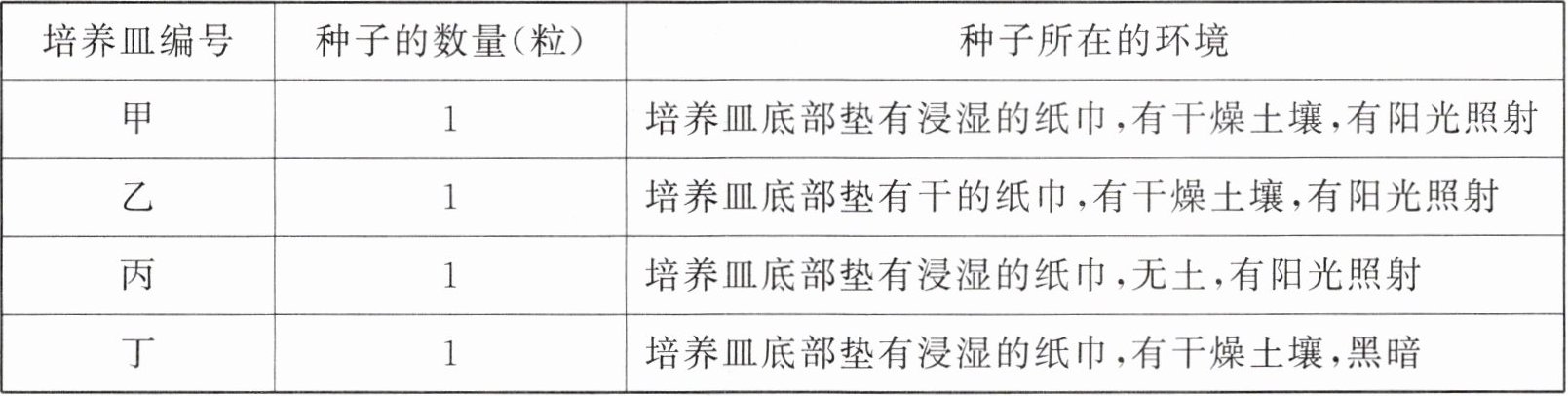 (1)种子数量太少,每个培养皿放 5 粒种子