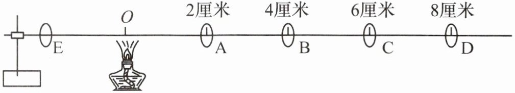 (2)小科在铁丝上的不同位置穿了 A、B、C、D、E 五个蜡烛圈,实验中蜡烛圈的作用是()。