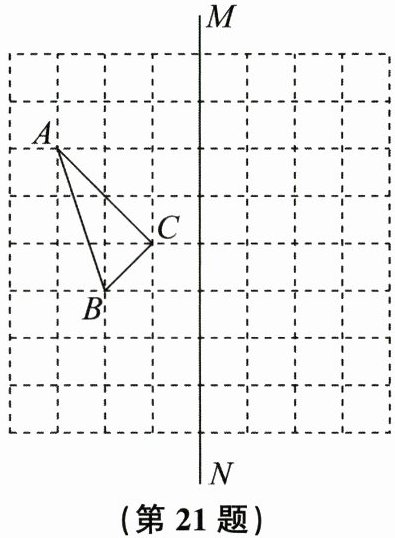 21. 如图,在由边长为1个单位长度的小正方形组成的网格中,$△ABC$的顶点均为格点(网格线的交点)。