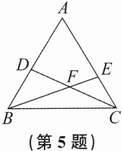 5. 如图,D是AB上一点,E是AC上一点,BE,CD相交于点F,$\angle A= 62^{\circ}$,$\angle ACD= 35^{\circ}$,$\angle ABE= 40^{\circ}$,则$\angle BEC$的度数为