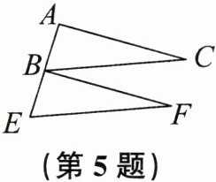 5. 如图,△BEF是由△ABC平移所得,点A,B,E在同一条直线上。若∠C= 20°,∠A= 92°,则∠E的度数为 (