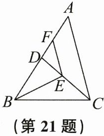 21. 如图,在$\triangle ABC$中,D是AB边上的点,BE平分$\angle ABC$交CD于点E,$EF // AC$交AB于点F。已知$\angle A = \angle BCD$。