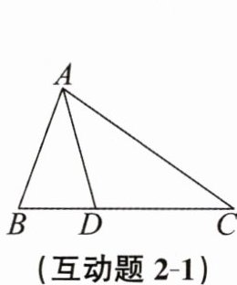 互动题2-1 如图,在△ABC中,D是BC上一点,连结AD,已知AB= 5,BD= 3,∠B= 70°,∠C= 35°。若∠BAD= 40°,则CD的长为 (