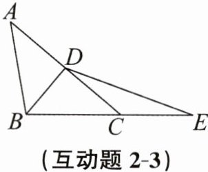 互动题2-3 如图,在△ABC中,∠A= ∠BCA,∠ABC= 100°,D为AC的中点,延长BC至点E,使CE= CD,连结BD和DE,则∠BDE的度数为