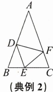 典例2 如图,在△ABC中,AB= AC,点D,E,F分别在AB,BC,AC上,且BE= CF,BD= CE。