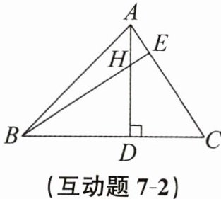 互动题7-2 如图,在△ABC中,AD⊥BC于点D,AD与BE相交于点H。若BH= AC= 2,DH= DC= 1,求AB的长。