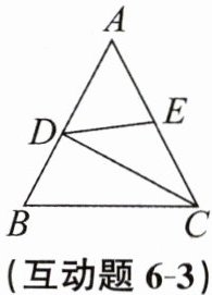 互动题6-3 如图,在△ABC中,E为AC的中点,且有BD= 1,CD= 3,BC= √{10},AD= √{7},求DE的长。
