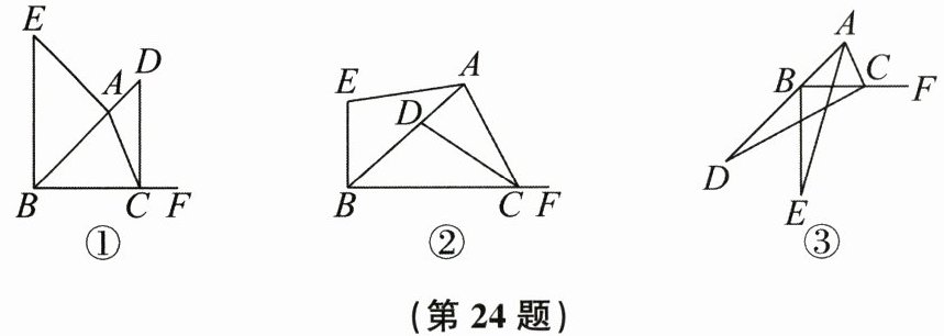 24. 在$\triangle ABC$中,点D在直线AB上,点E在平面内,点F在BC的延长线上,$\angle E = \angle BDC$,$AE = CD$,$\angle EAB + \angle DCF = 180^{\circ}$。