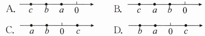 互动题2 实数$a,b,c满足a>b$,且$ac<bc$,则它们在数轴上的对应点的位置可以是 (