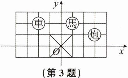 3. 如图所示为中国象棋棋盘的一部分,建立如图所示的平面直角坐标系,已知“车”所在位置的坐标为$(-2,2)$,则“炮”所在位置的坐标为(