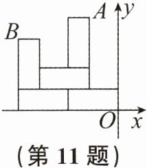 11. 如图,用大小、形状完全相同的长方形纸片在平面直角坐标系中摆成如图所示的图案。已知点$A(-2,5)$,则点B的坐标为______