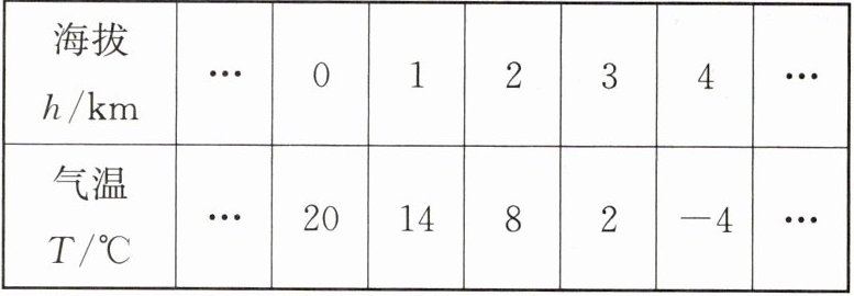 9. 学习地理时,我们知道:“海拔越高,气温越低。”如表所示为某地某天的海拔h(km)与对应高度处气温T(℃)的关系。
