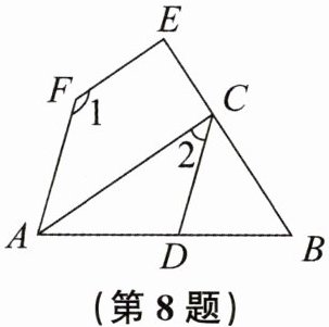 8. 如图,已知$AC// EF,∠1+∠2= 180^{\circ }$。求证:$∠FAB= ∠CDB$。