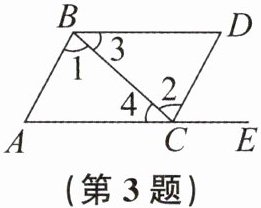 3. 如图,点 E 在 AC 的延长线上。若想证明$AB// $ CD,则需要的条件可以是 (