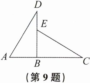 9. 如图,点 A,B,C 在同一条直线上,点 E 在 BD 上,且$\triangle ABD\cong \triangle EBC,AB= 3cm,BC= 5cm$。