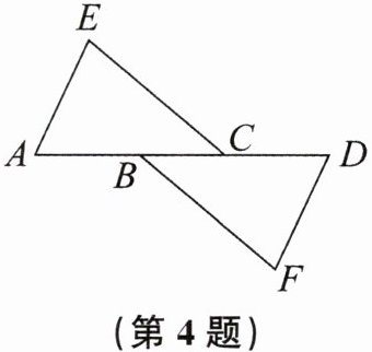 4. 如图,$\triangle ACE\cong \triangle DBF,∠A= 65^{\circ },∠F= 75^{\circ },则∠ACE$的度数为 (