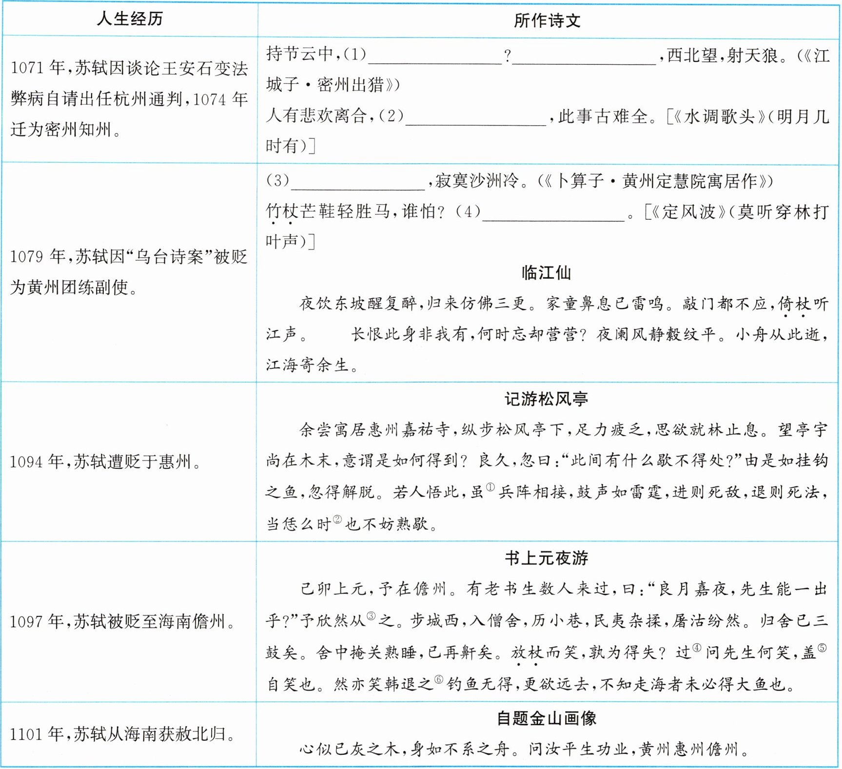 7. 为方便同学们更好地理解苏轼的诗文,请将注释补充完整。(3分)
