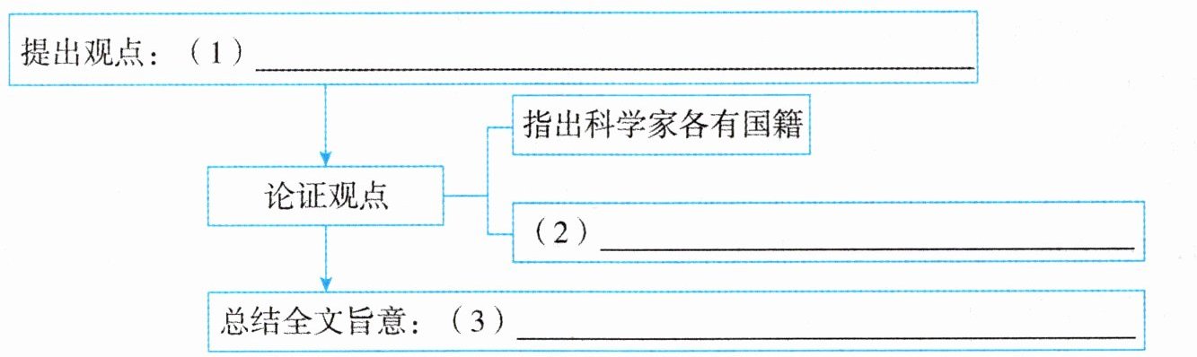 3. 合适,材料中这些科学家在外国学到了先进的科学知识之后,都义无反顾地选择回国积极投身国家建设,为国家的发展提供宝贵的经验,奉献自己的力量。相比于诺贝尔奖,我们中国的科学家们更在乎的是国家的建设和发展。这与第②段中“科学家各有国籍”论点一致,可以作为事实论据。