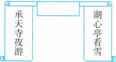 5. 梁衡在《秋月冬雪两轴画》中说,《记承天寺夜游》和《湖心亭看雪》是我国古典文学宝库中的两轴精品。如果以“承天寺夜游”和“湖心亭看雪”为上下联,请从两文中分别选取一个字,将两个字合起来作为这副对联的横批