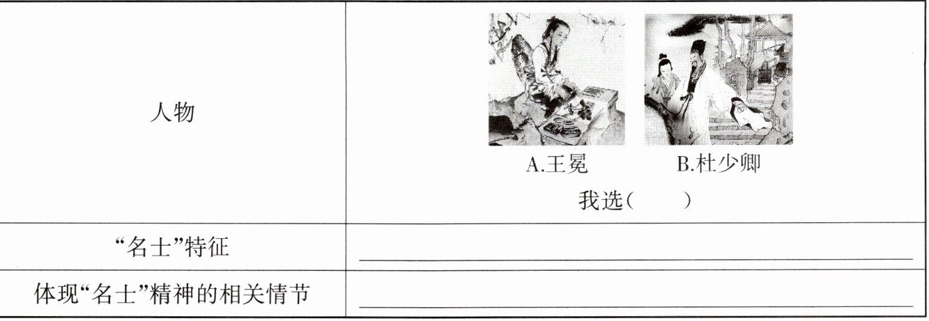 12. 同学们在读《儒林外史》时,为书中的一些“名士”做了人物卡片,请选择其中一个人物完成。