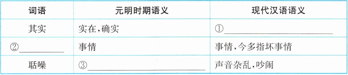 (2) 《水浒传》展现了元明时期白话小说鲜明的语言特色,请你试着读一读,并辨别同一词语在元明时期和现代汉语中语义的不同。