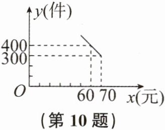 10. 某商铺销售一批成本为每件50元的商品,规定销售单价不低于成本价,又不高于每件70元,销售量y(件)与销售单价x(元)的关系可以近似地看做一次函数(如图).