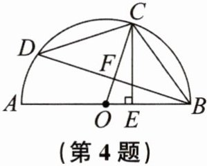 4. 如图,AB是半圆O的直径,C,D是半圆上的点,CD= CB,过点C作CE⊥AB于点E,连结OC,BD相交于点F.