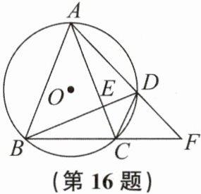 16. (12分)如图,等腰三角形ABC内接于$\odot O,AB= AC$.D为$\widehat {AC}$上一点,连结BD交AC于点E,连结AD并延长交BC的延长线于点F,连结CD.