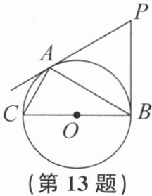 13. (8分)如图,PA,PB分别与$\odot O$相切于点A,B,AC为弦,BC为$\odot O$的直径.若$∠P= 60^{\circ },PB= 2cm$.