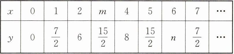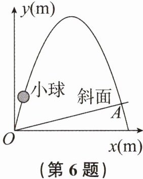 6. 如图,一小球从斜坡点O以一定的方向飞出,球的飞行路线可以用二次函数$y = ax^{2}+bx(a < 0)$的图象刻画,斜坡可以用一次函数$y = \frac{1}{4}x$的图象刻画,小球飞行的水平距离$x(m)与小球飞行的高度y(m)$的变化规律如下表所示: