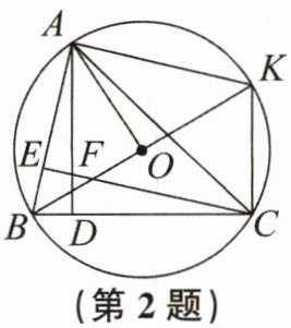 2. (2023秋·宁波慈溪期末改编)如图,$\triangle ABC内接于\odot O$,高AD,CE相交于点F,连结BO交$\odot O$于点K,连结AO,AK,CK.若$AF= AO,CF= 5,BC= \sqrt {39}$,则$\odot O$的半径为