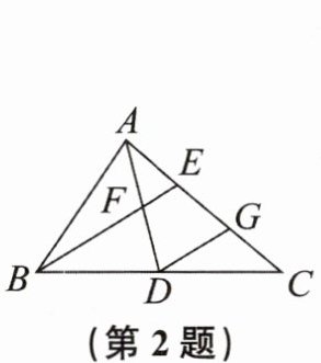 2. (2024秋·杭州上城模拟)如图,在$\triangle ABC$中,D 为 BC 边上的中点,E 为 AC 边上的三等分点$(AE\lt EC)$,连结 AD,BE,交点为 F,过点 D 作$DG// EF$,已知$\triangle AEF$的面积为 4,则$S_{\triangle ABC}$为 (