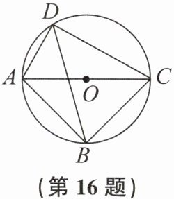16. (10分)如图,四边形ABCD内接于$\odot O$,AC为$\odot O$的直径,$\overset{\frown}{AB} = \overset{\frown}{BC}$.