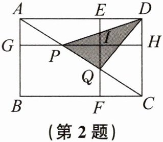 2. 如图,E,F,G,H 分别是矩形 ABCD 四条边上的点,连结 EF,GH 相交于点 I,且$GH // AD$,$EF // AB$,矩形$GBFI \backsim$矩形 EIHD,连结 AC 交 GH,EF 于点 P,Q. 下列条件中,一定能求出$\triangle DPQ$面积的是 (