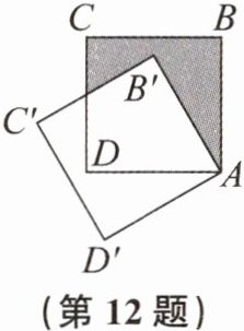 12. 如图,边长为 a 的正方形 ABCD 绕点 A 按逆时针方向旋转 30°得到正方形 AB'C'D',则图中阴影部分的面积为______