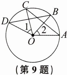 9. 如图,A,B,C,D是$\odot O$上的点,$∠1= ∠2,AC= 3cm$.