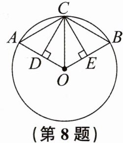 8. 如图,在$⊙O$中,$CD= CE$,$CD⊥OA于点D$,$CE⊥OB于点E$. 求证:$AC= BC$.